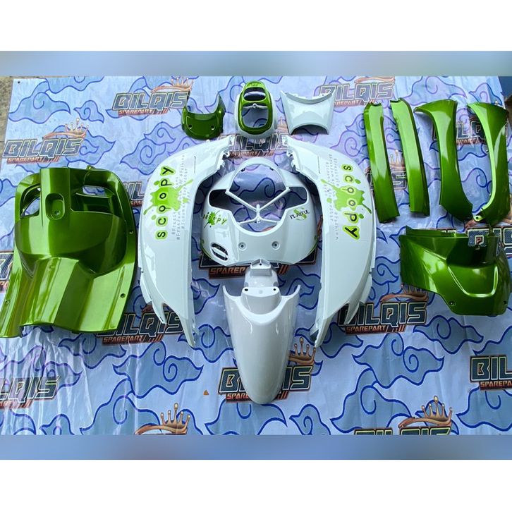 Body scoopy 2017 cover full set body halus honda scoopy donat tahun 2017 2018 warna putih ijo plus striping