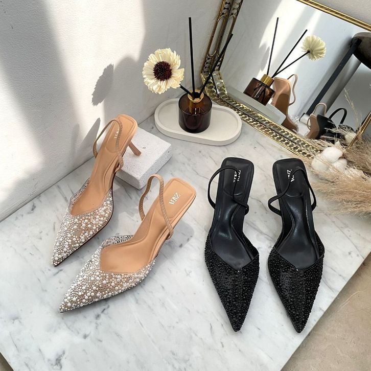SEPATU WANITA ZS-4058 PEARL SLINGBACK HEELS 7CM