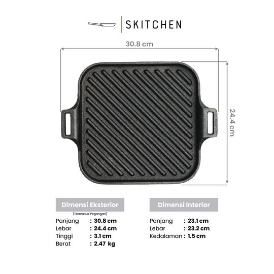 [ PROMO 6.6 BIG SALE ] SKITCHEN CAST IRON GIZA GRILL PAN - PANCI GRILLER ALAT PANGANGAN BBQ, STEAK, PREMIUM ANTI GORES