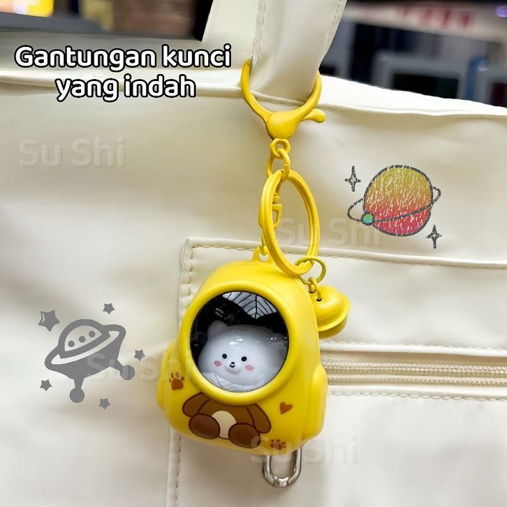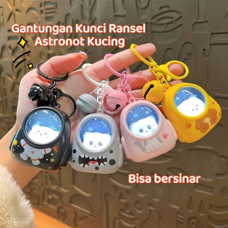 Gantungan Kunci Backpack /Cat Keychain/Cat Karakter Keychain With Night Lamp /Multifungsi Astronot Cute/tas/Gant