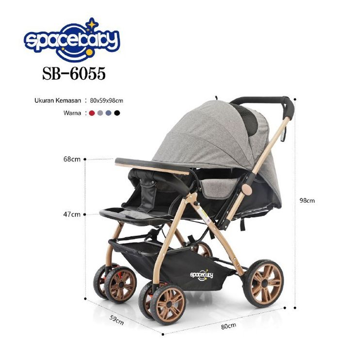 Stroller Bayi Lipat Spacebaby SB 6055 Stroller Bayi Sugar Baby Roda 3 Kembar 2 Arah Spacebaby Official Store