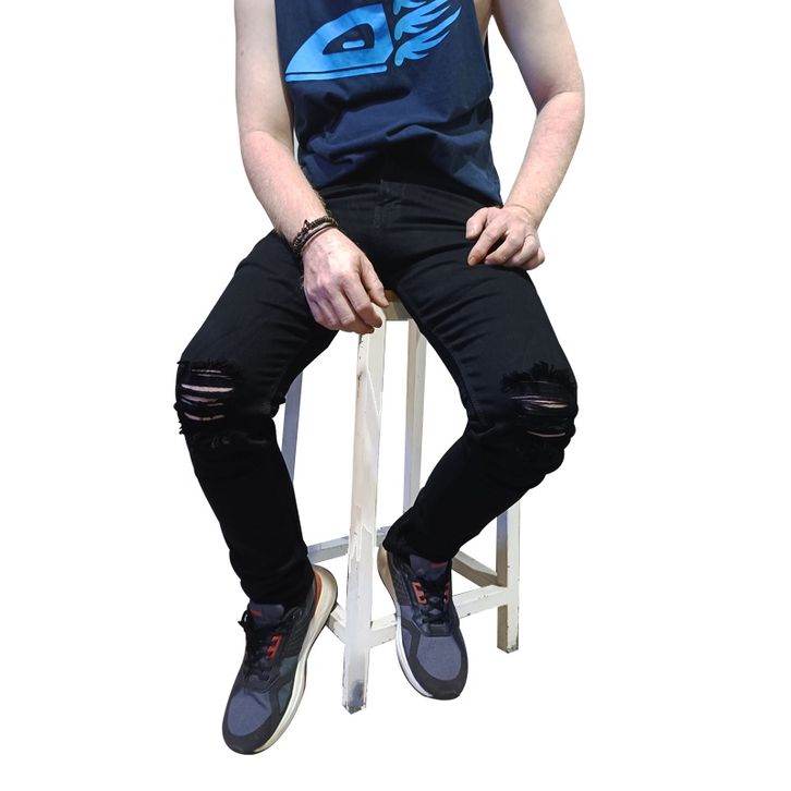 CLOVERFIELD Celana Jeans Pria Sobek Ripped Lutut Robek Slimfit Bikers Hitam Jumbo