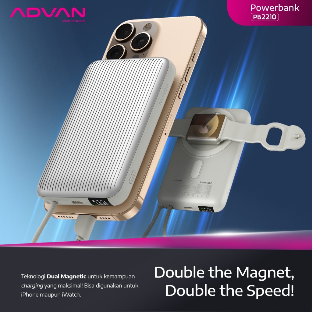 [Mall] Powerbank ADVAN Wireless PB2210 | Dual Magnetic | 10000mAh | Magsafe | Fast Charging Speed | Intergrated Type C