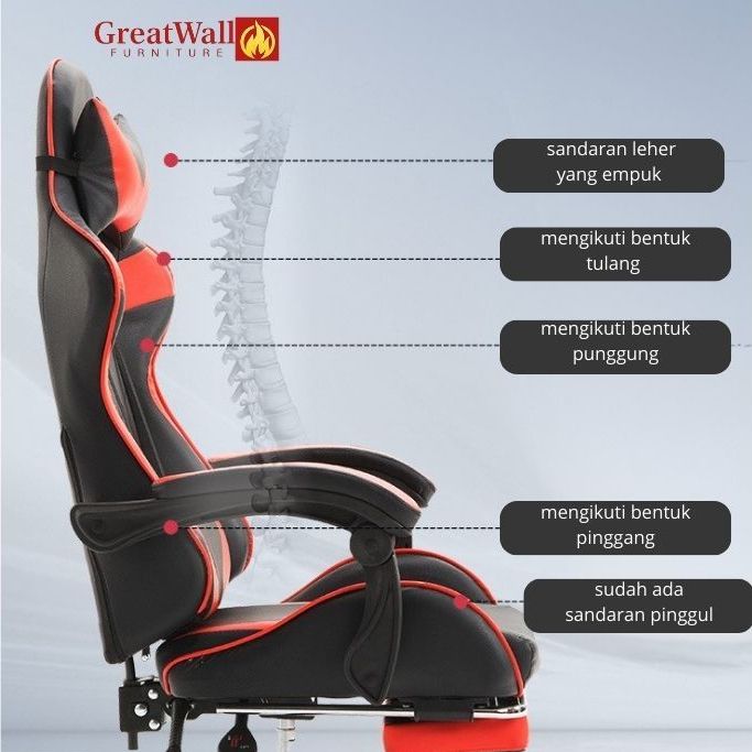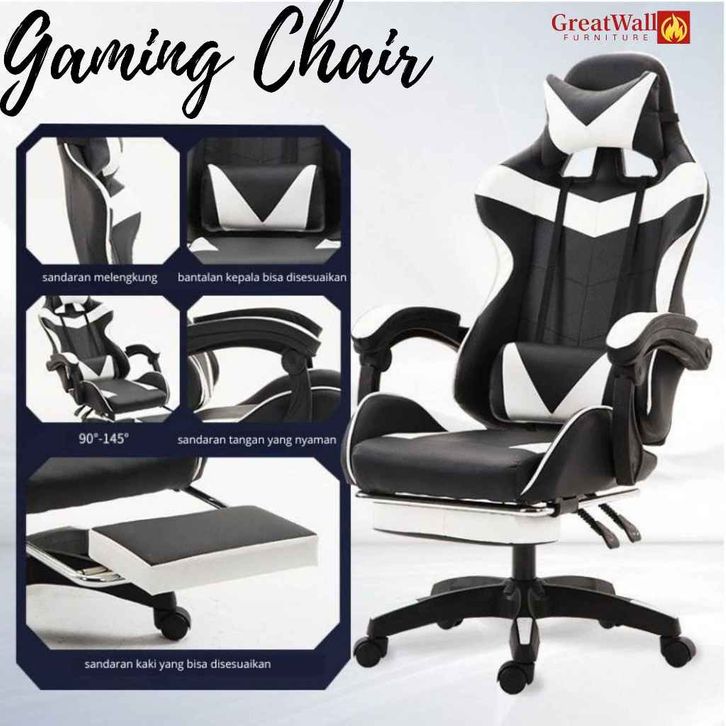 TANPA DPKursi Gaming Murah Kursi Kerja Kursi Gamer Dengan Sandaran Kaki Bisa Untuk Berbaring-Bahan PU