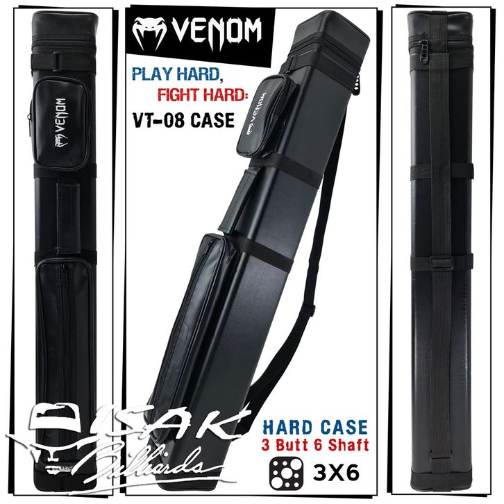 Venom 3x6 Case VT-08 - Tas Stick Hard Cue Sarung Stik Pool Billiard 3B6S 3 Butt 6 Shaft Tabung