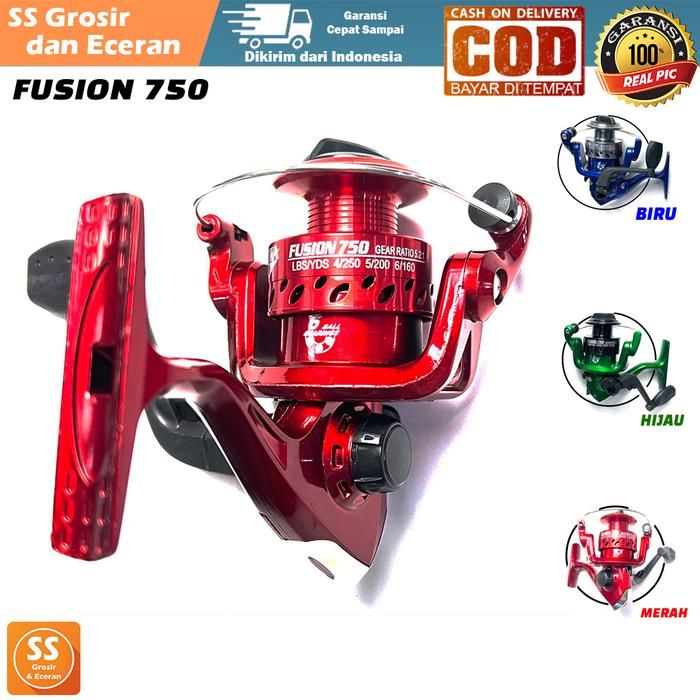 Promo ALUMINIUM SPOOL SPINNING REEL GULUNGAN SENAR FUSION 750 6BB BIRU/HIJAU - Hijau Promo