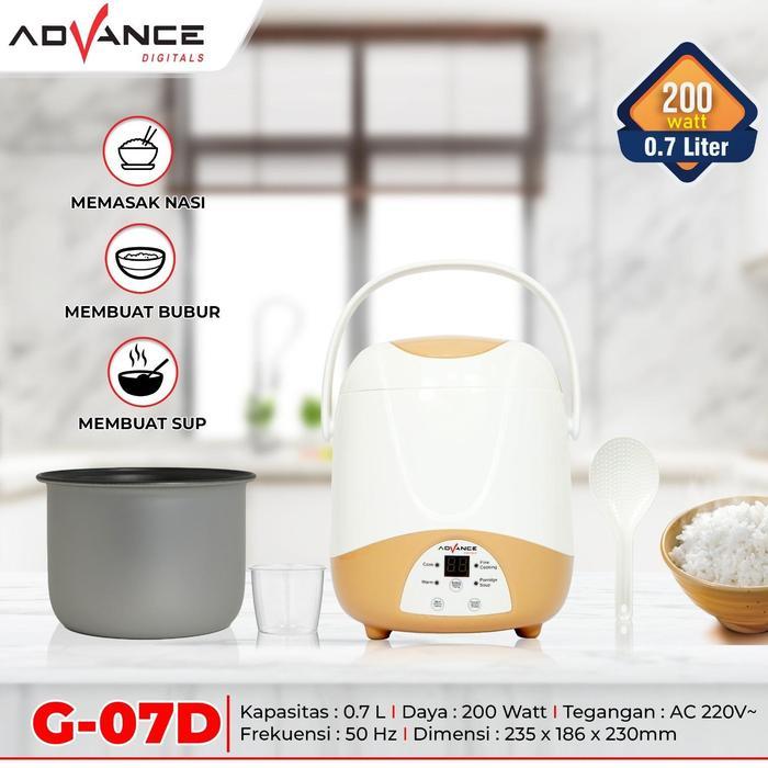 ADVANCE G-07D Rice Cooker Travel 0.7 Liter Anti Lengket 200 Watt Garansi Resmi 1 Tahun Garansi Resmi & 100% Ori