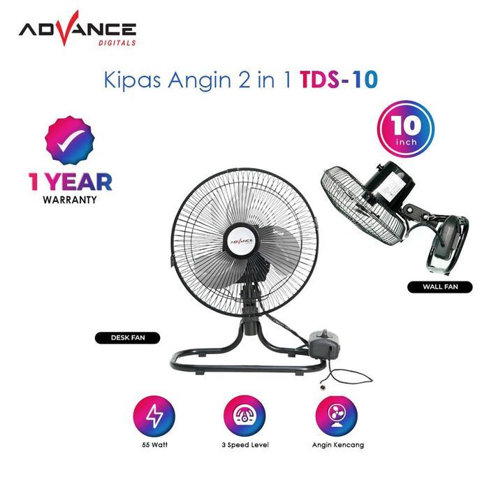 ADVANCE Kipas Angin TDS-10 2in1 Kipas Dinding / Meja Kipas Angin 10 inch - Hitam Garansi Resmi & 100% ORI - Hitam