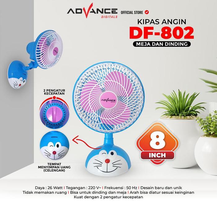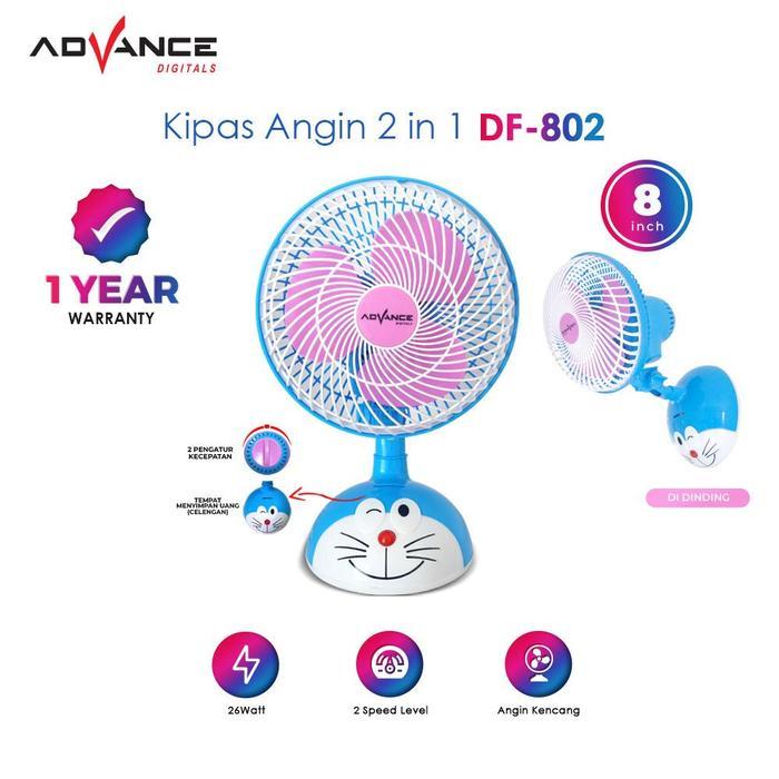 ADVANCE Kipas Angin 8" Karakter DF-802 2in1 Kipas Dinding Kipas Meja - Biru Garansi Resmi & 100% ORI - Biru