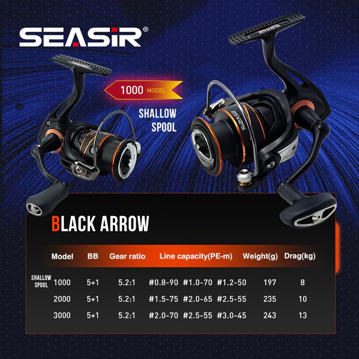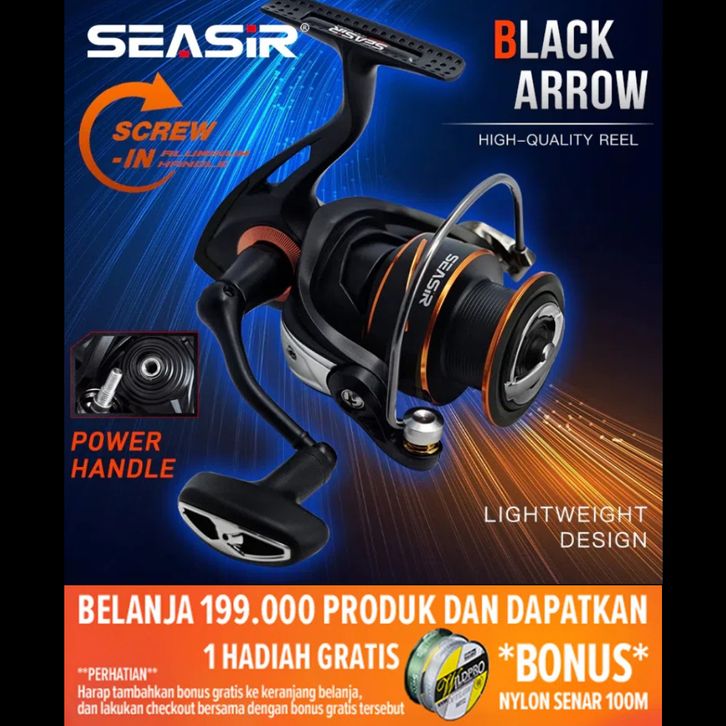 Ril pancing daido [OFFICIAL] SEASIR BLACK ARROW Reel Pancing Power Handle Reel Spinning 1000-3000 Reel Pancing Putar,