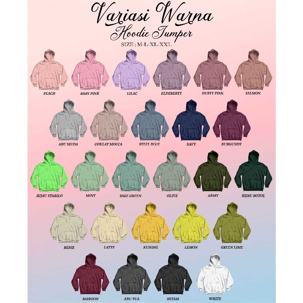 HITAM, PUTIH, PEACH, STEEL BLUE, ABU MUDA, NAVY, COKLAT MOCCA, SAGE GREEN, LATTE, BEIGE, BABY PINK, WARNA LAIN DI NOTE