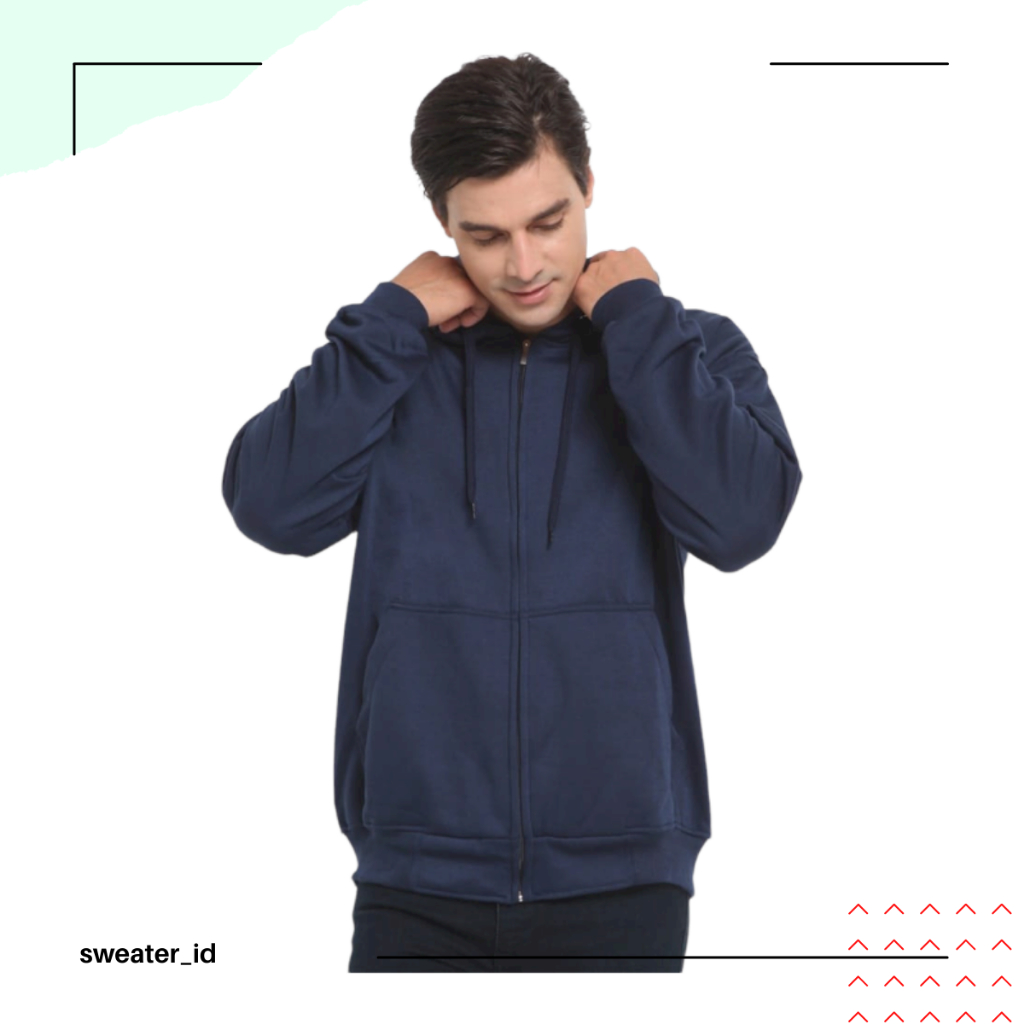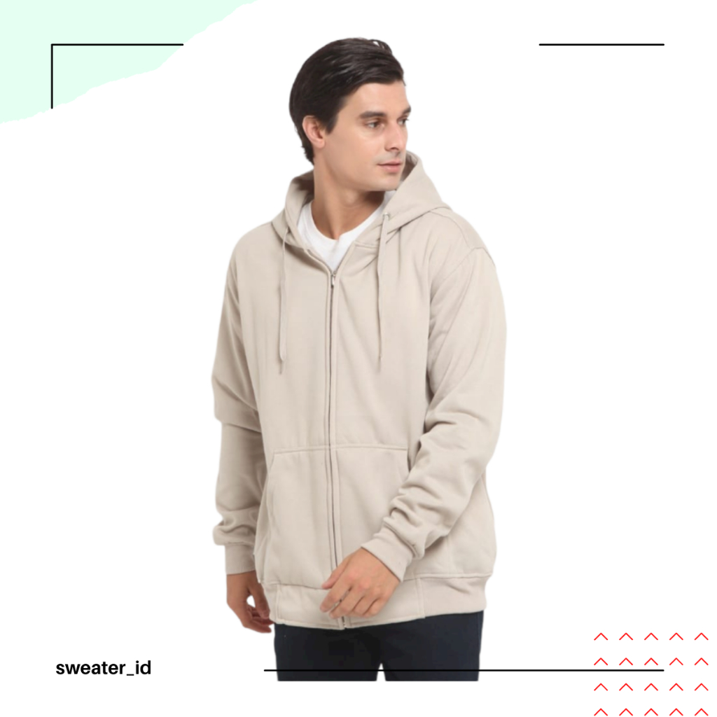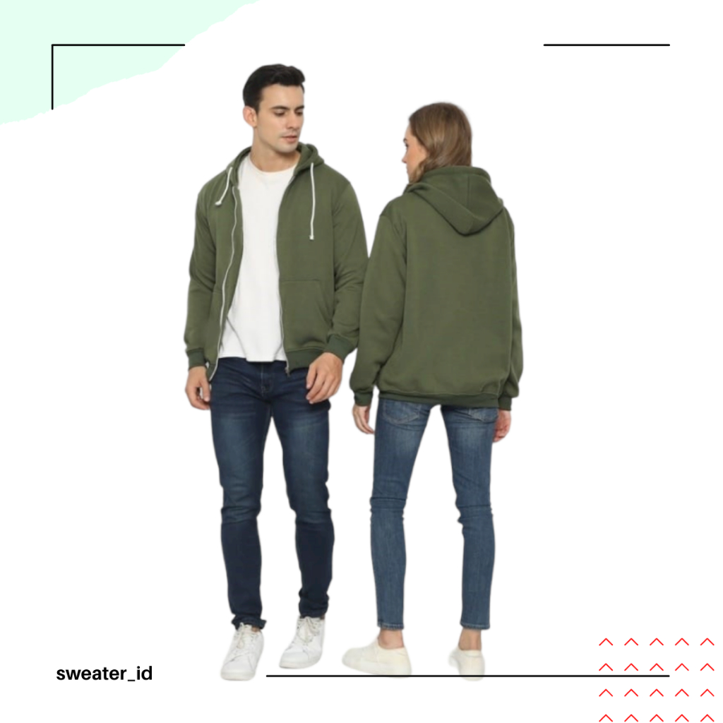 Jaket Hoodie Zipper Olive Polos Unisex Fleece Tebal Premium