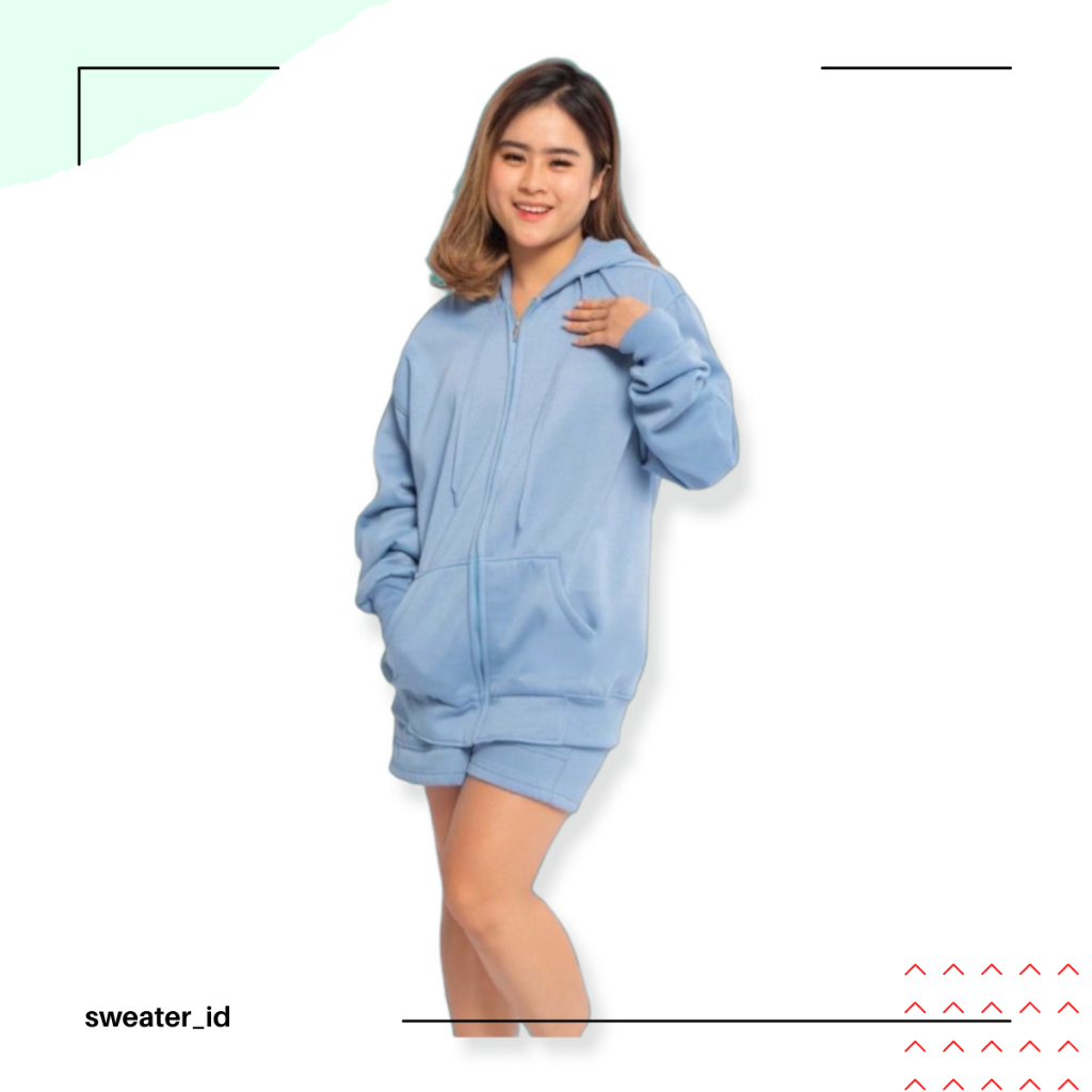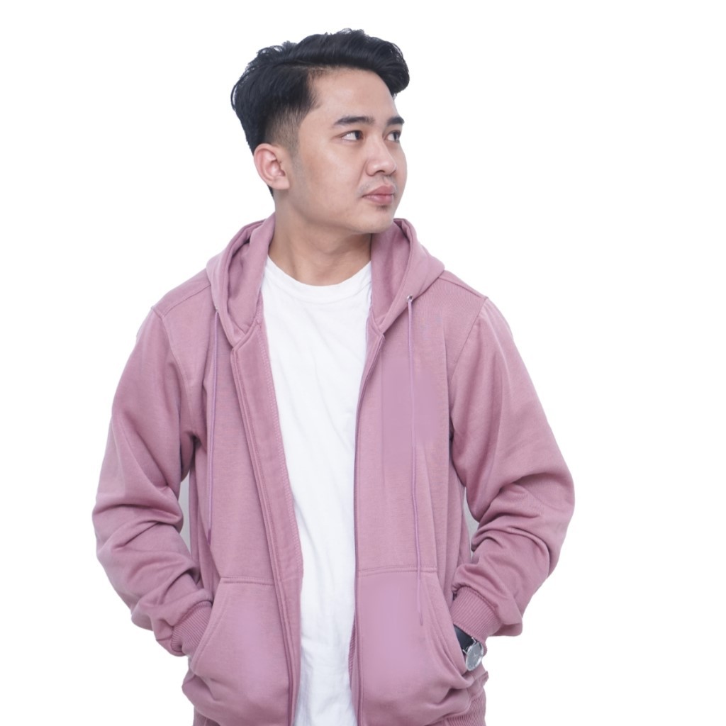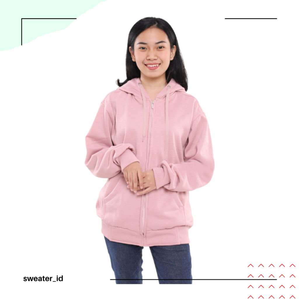 Jaket Hoodie Zipper Olive Polos Unisex Fleece Tebal Premium