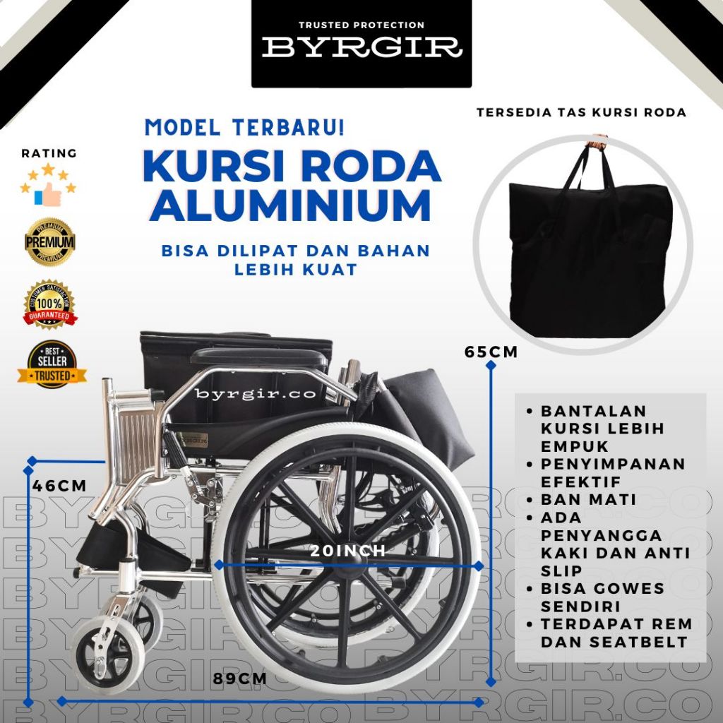 BYRGIR Kursi Roda Lipat Aluminium Premium Wheelchair Alumunium Traveling Travel Foldable Wheel Chair Lansia Medis Rumah