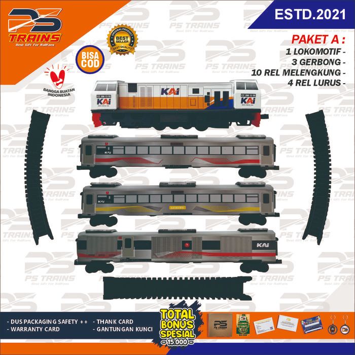 EXCLUSIVE RANGKAIAN MAINAN KERETA API CC206 LIVERY KAI EKSEKUTIF STAINLESS STEEL NEW GENERATION