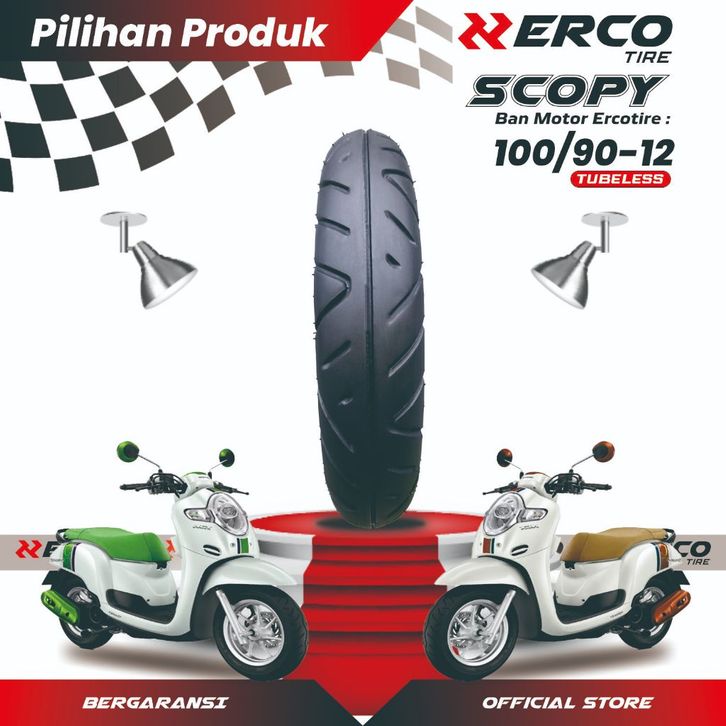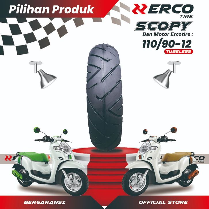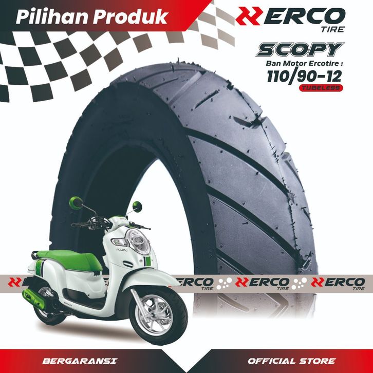 Ban Motor ERCO TIRE Satu Set Ban Matic Scoopy Ring 12 Depan Belakang Tubeless 110/90-12 100/90-12 New Scoopy 2016-2024