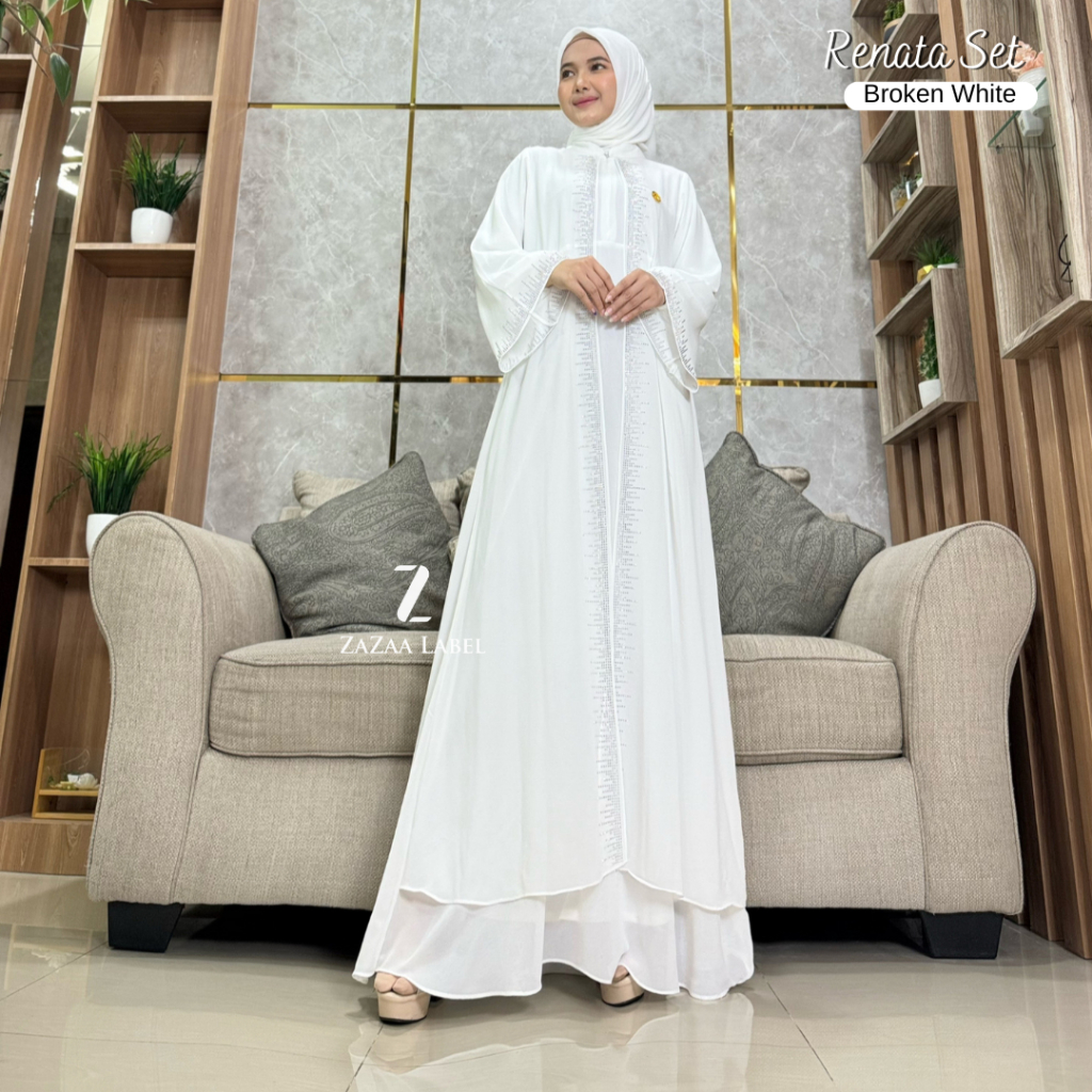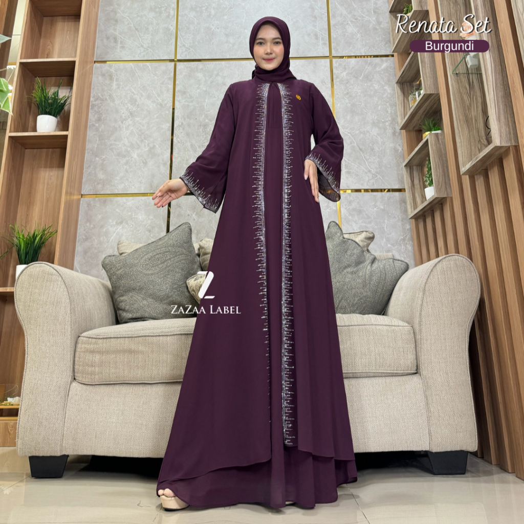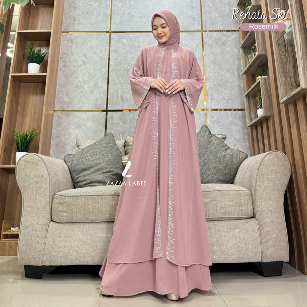 BAJU GAMIS WANITA SET HIJAB RENATA MOTIF POLOS BAHAN CERUTY BABYDOLL MODEL OUTER MENYATU BUSUI