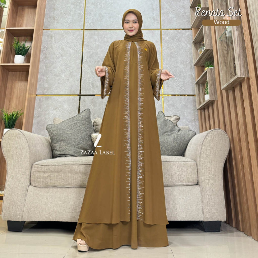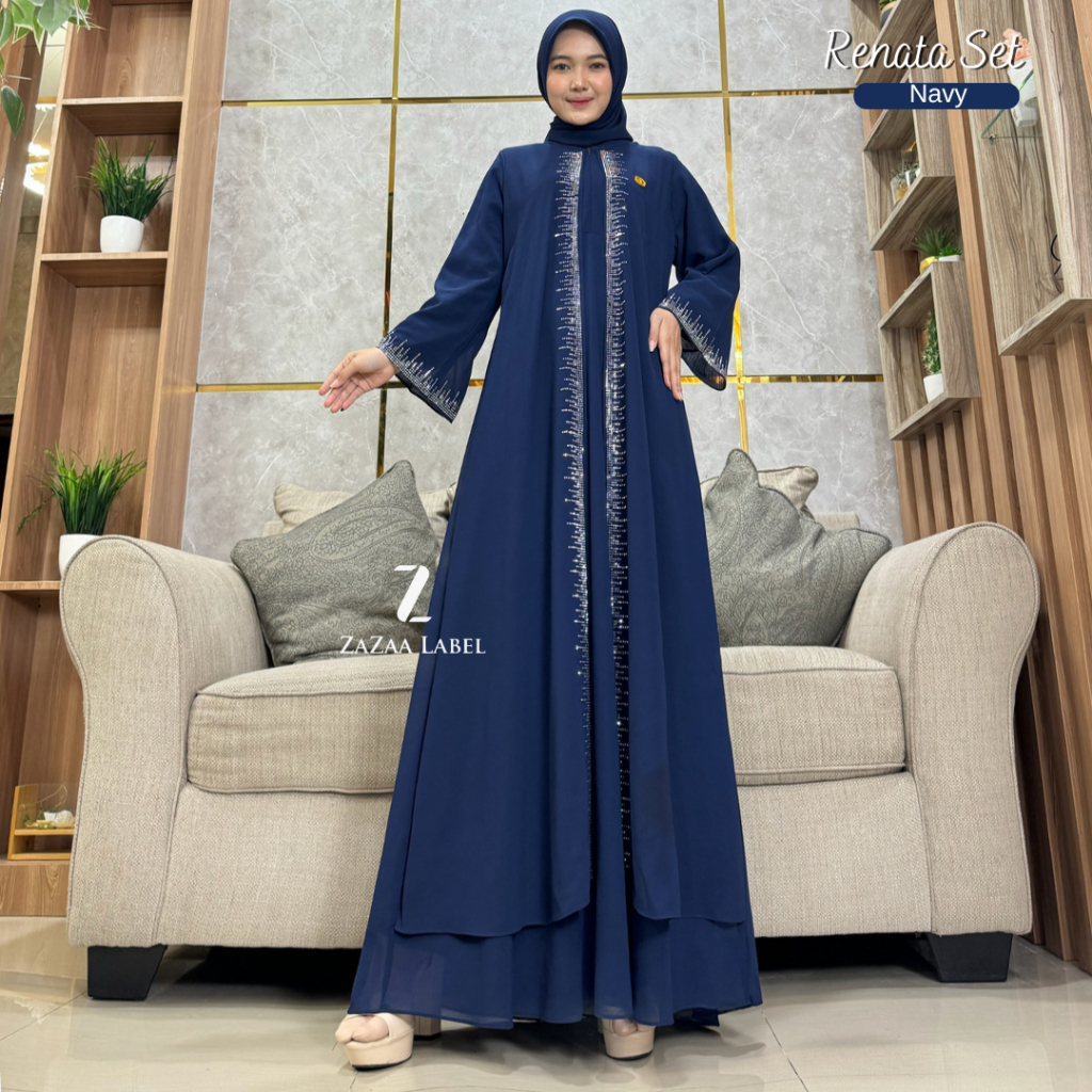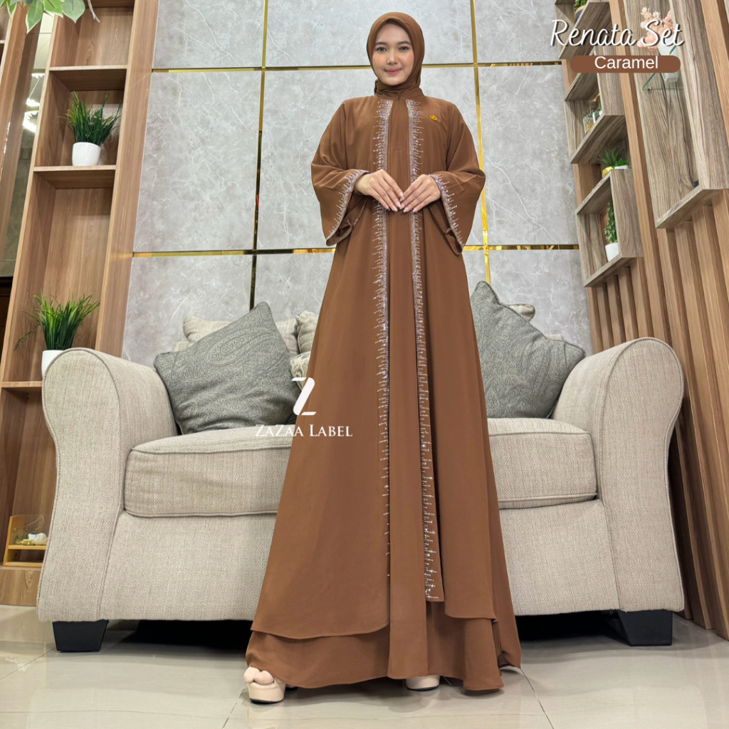 BAJU GAMIS WANITA SET HIJAB RENATA MOTIF POLOS BAHAN CERUTY BABYDOLL MODEL OUTER MENYATU BUSUI