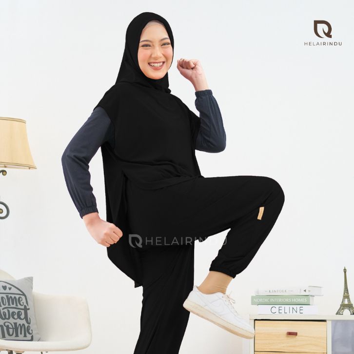HELAIRINDU - Hijab Sport Menutup Dada Outer Hoodie Kerudung Olahraga Royal Jersey