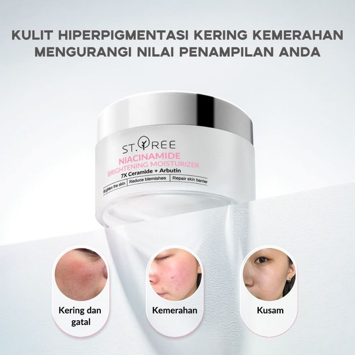 ST.TREE Niacinamide Brightening Moisturizer 30 gr | 7X Ceramide + Alpha Arbutin - Pelembab Wajah untuk Menghidrasi, Menc