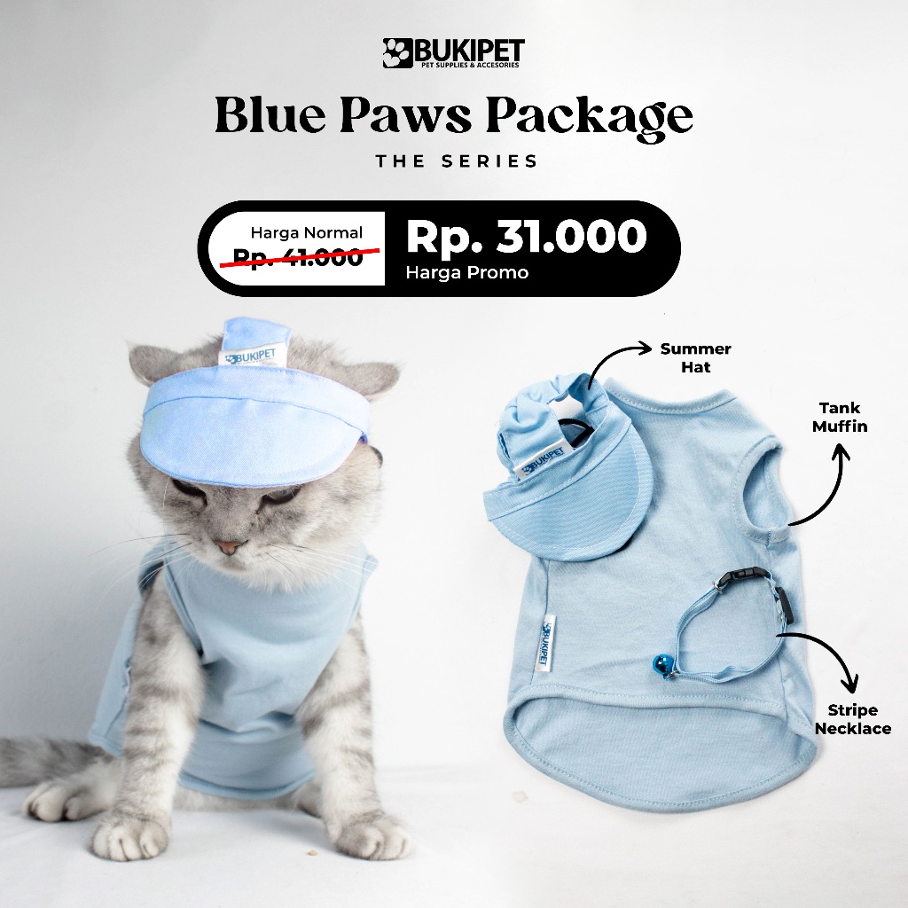 Baju Kucing Anjing Kelinci Monyet Cewek Cowok paket Aksesoris Hewan-BUKI BLUE PAWS PACKAGE