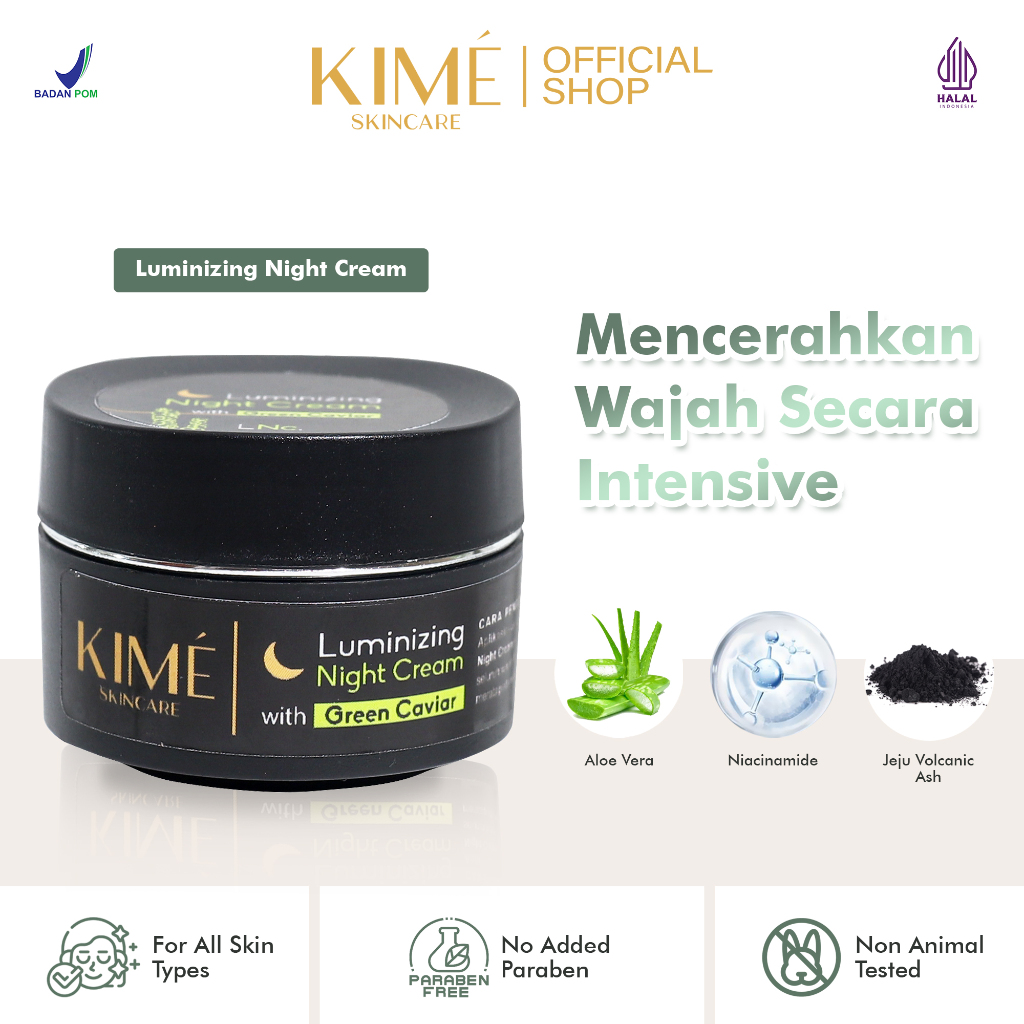CREAM PENCERAH WAJAH KIME SKINCARE LUMINIZING NIGHT KRIM GLOWING PEMUITH KULIT PENGHILANG FLEK HITAM JERAWAT BPOM ORIGIN