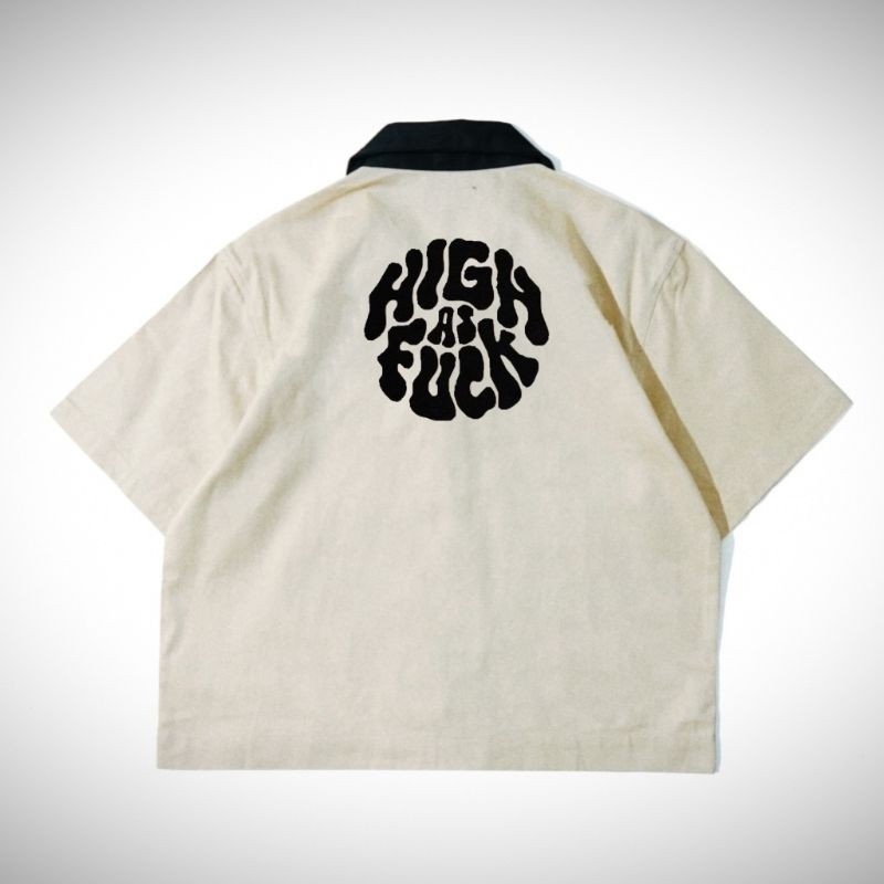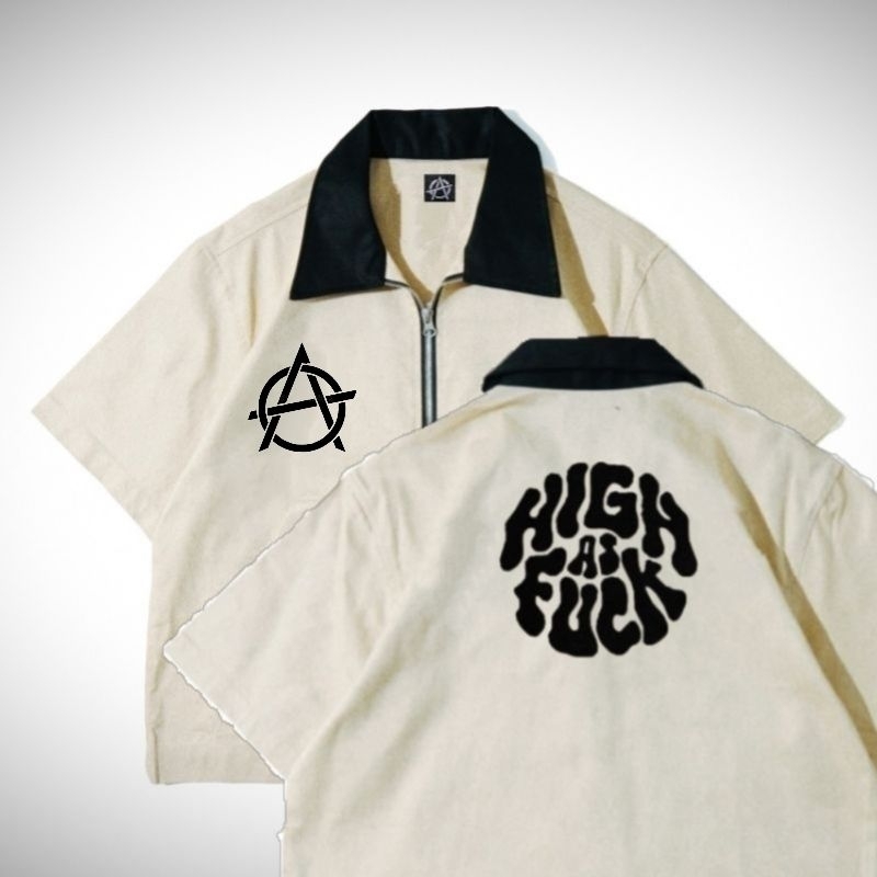 Baju Lengan Pendek HIGH FUk Work Shirt Zip Bordir