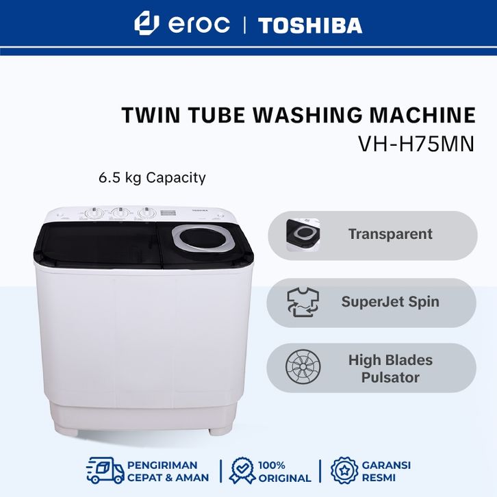 Mesin Cuci TOSHIBA Dua Tabung 6.5kg .el VH-H75MN Twin tub - Dilengkapi dengan Super Jet Spin