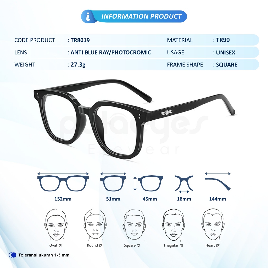 Pulaeyes Eyewear Kacamata Minus Antiradiasi Photocromic Bentuk Kotak TR90 Kacamata Skena TR8019