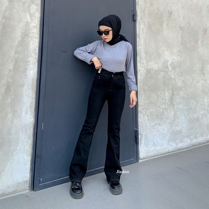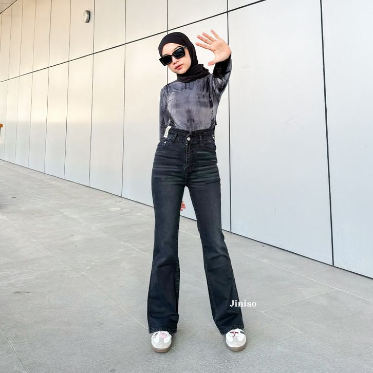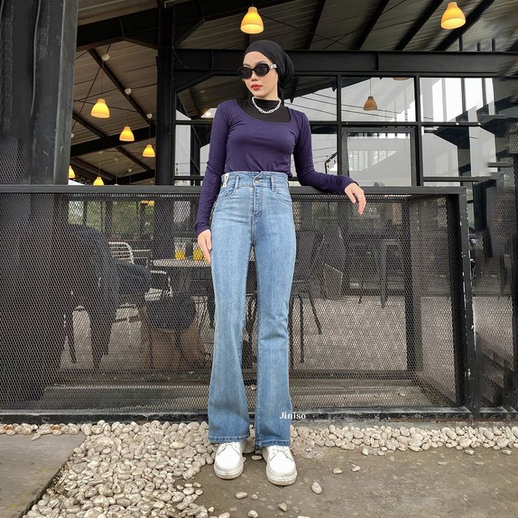 JINISO - Ultra Highwaist Cutbray Stretch Jeans - JINISO OFFICIAL STORE - CELANA HIGH WAIST WANITA - CELANA WANITA JEANS