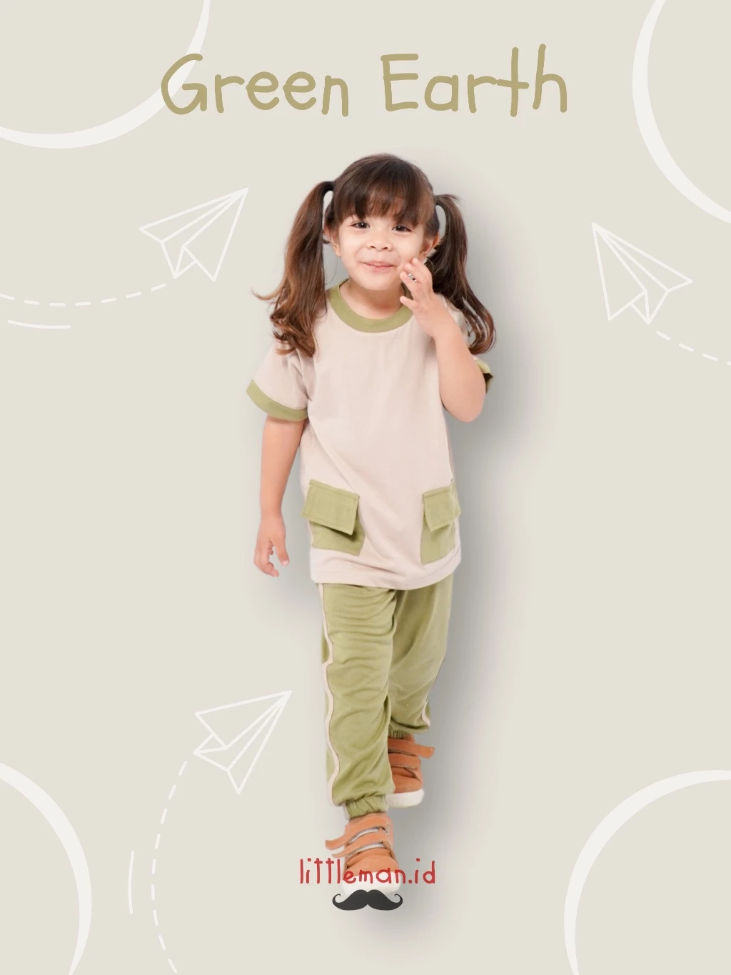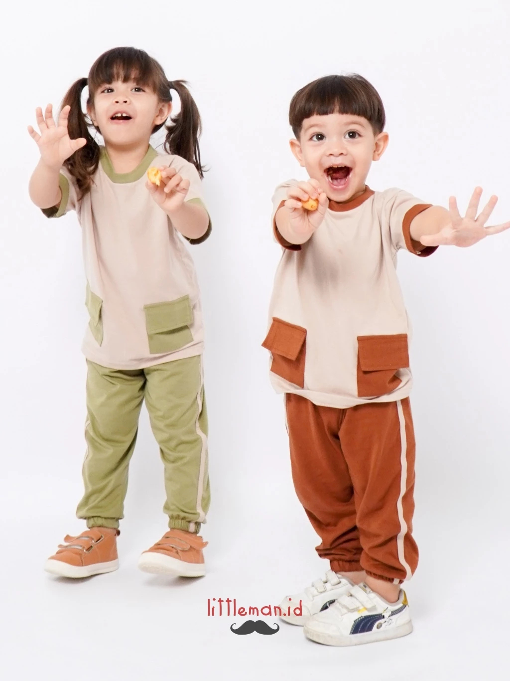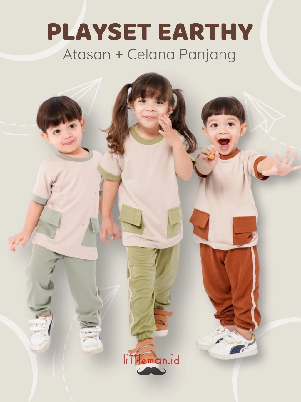 Playset Anak Earthy Series Setelan Kaos Baju Celana Panjang Laki Perempuan Premium