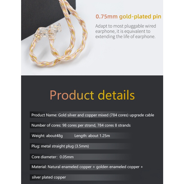 KZ 8 CORES golds SILVER AND COPPER MIXED 784 CORE UPGRADE CABLE 90-7 UPGRADE KABEL KABEL KZ ZSN PRO X ZS10 PRO ZSX ZAX