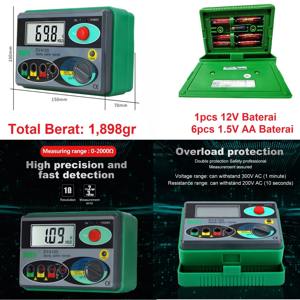 DY4100 Ground Resistance Tester DUOYI Earth Tester Alat Pengukur Resistansi Tanah Digital Grounding Listrik Bangunan Ged
