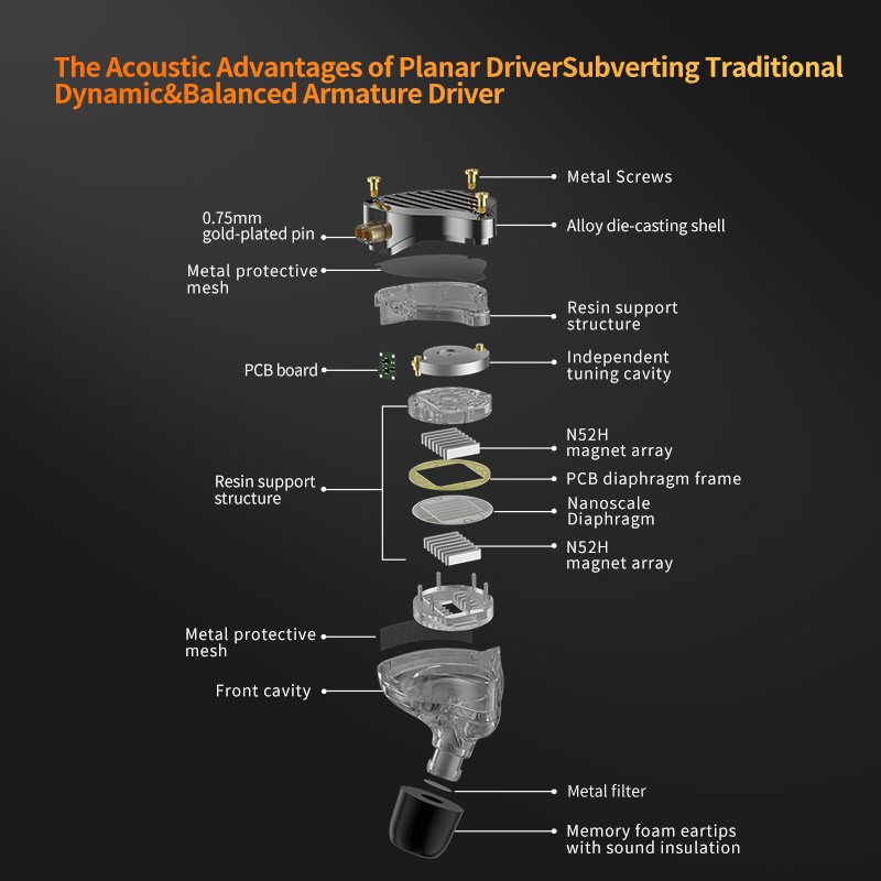 KZ PR3 PLANAR IN EAR METAL EARPHONE WITH MIC - GARANSI RESMI