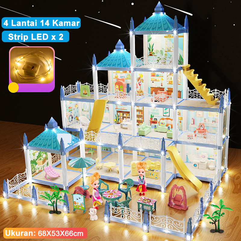 Mainan Anak Perempuan Doll House Princess Castle Besar Lengkap Perabot Rumah Lampu Terbaru