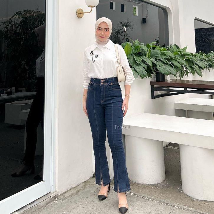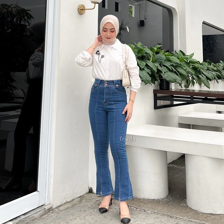 TRIVELA - Celana Cutbray Loose Front Line Anti Ngatung 27-38 3 warna - Celana Jeans Cutbray Wanita - ELSA / PLAINBF