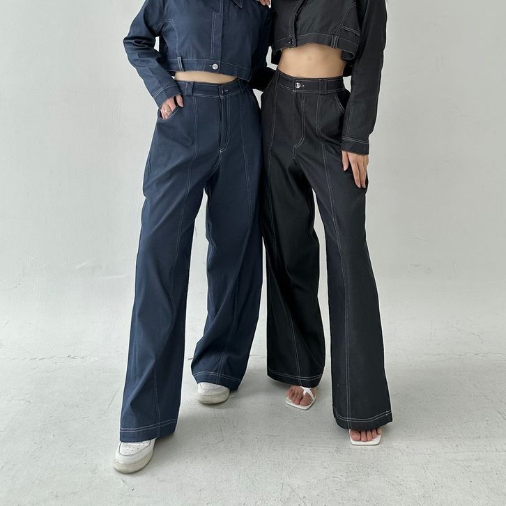 AXEL PANTS - Celana Panjang Straight Denim Wide Leg Pants Two Tone Highwaist Wanita Trousers Lurus Baggy Kulot Highwais