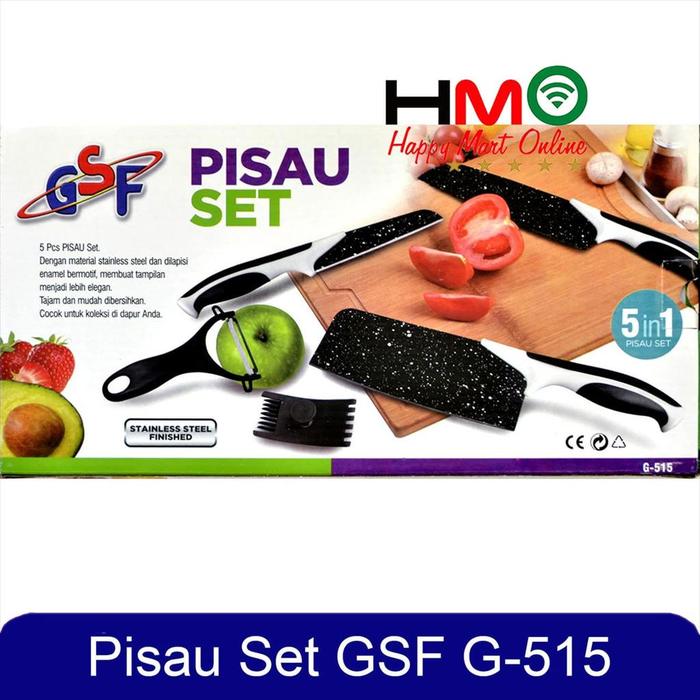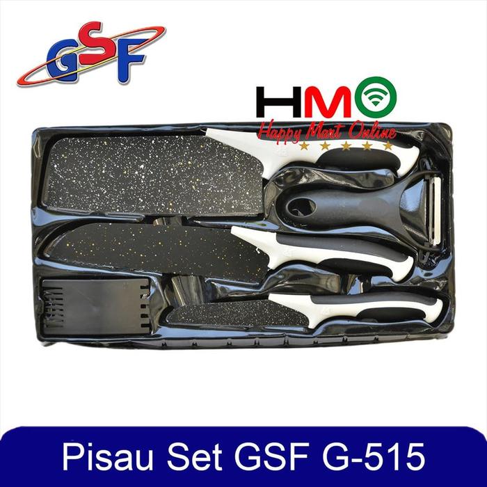 Terlaris Pisau Set Batu Maifan 5 in 1 Lapis Keramik Knife Set Granite Hitam GSF-515 GSF 515 - Warna Promo