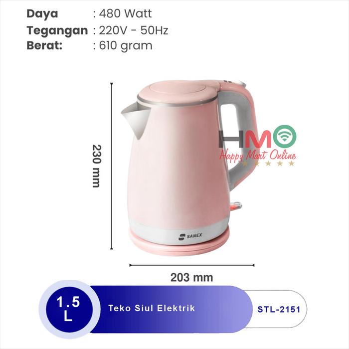 Promo Sanex Teko Listrik Stainless 1.5 Liter Electric Kettle Low Watt Sanex STL 2151 AB / PK 480 Watt - ABU ABU Promo