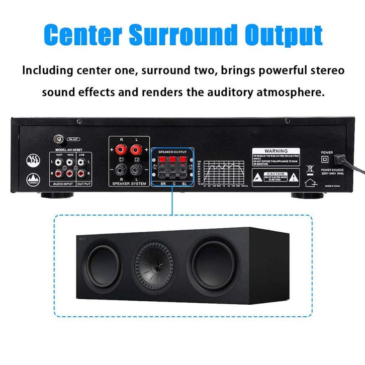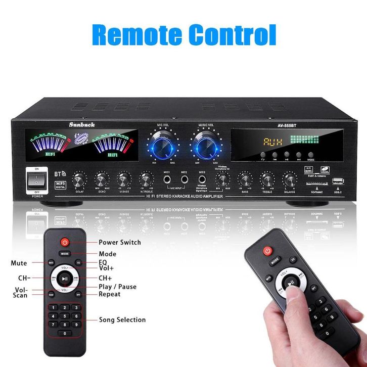 [Star] Sunbuck Power Amplifier 4000W Amplifier Bluetooth 5.0 Microphone HiFi USB MP3 Player - AV-555BT - Black