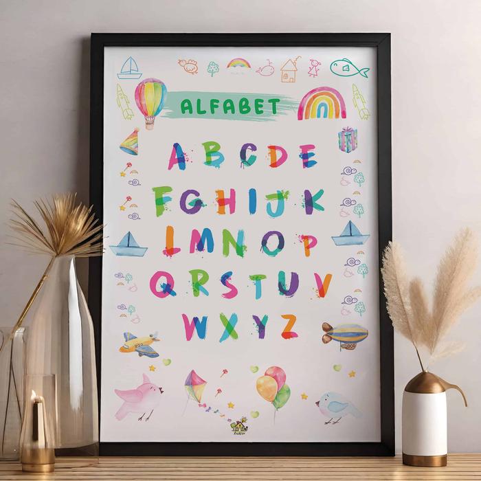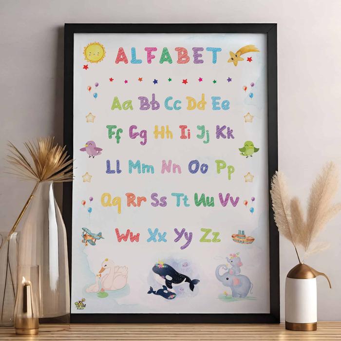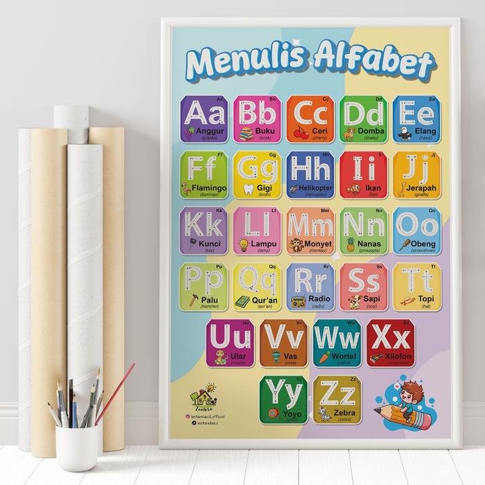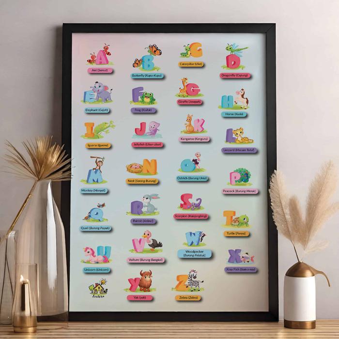 Poster Edukasi HURUF ALFABET Pendidikan Anak TK PAUD SD Bilingual Dua Bahasa - ALFABET