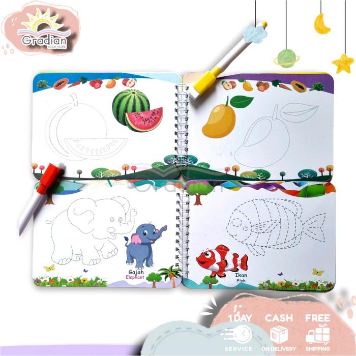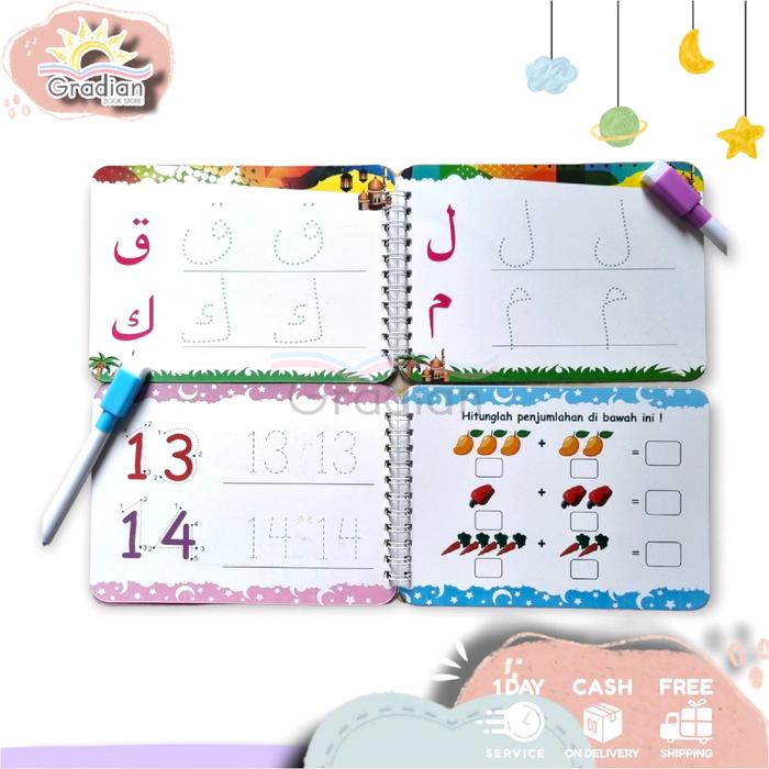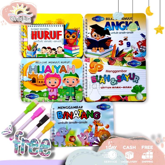 FREE SPIDOL - Buku Wipe and Clean Menulis Huruf Angka Hijaiyah dan Menggambar Buah Sayur Binatang - Menulis Angka