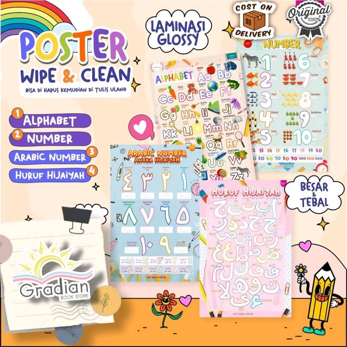 Poster Edukasi Anak Balita PAUD TK SD / Poster Wipe and Clean Glossy / Hijaiyah Huruf ABC Angka Hewan - Huruf Alfabet