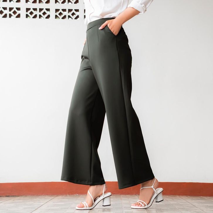 HaymeeIDN - Celana Kulot Sax Blue Wanita Celana Cullot Highwaist Scuba Kantor Casual Fashion