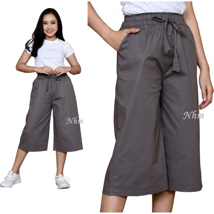 NHM Celana Kulot Pendek Wanita Polos Celana Pendek 7/8 Katun Stretch