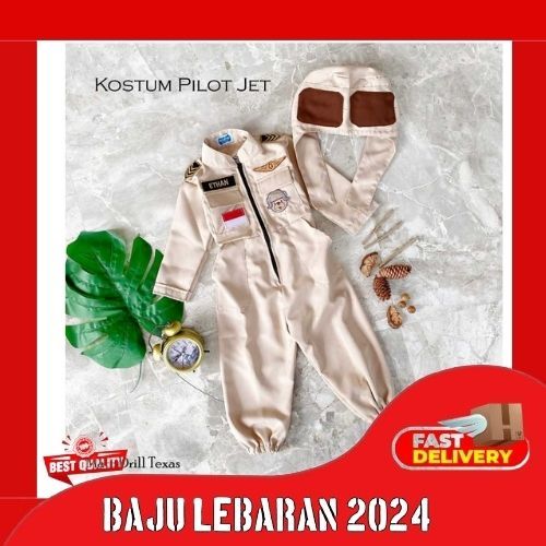 Azzafran – Kostum Pilot Jet Anak Baju Profesi Anak Laki-Laki, Model Jumpsuit Topi
