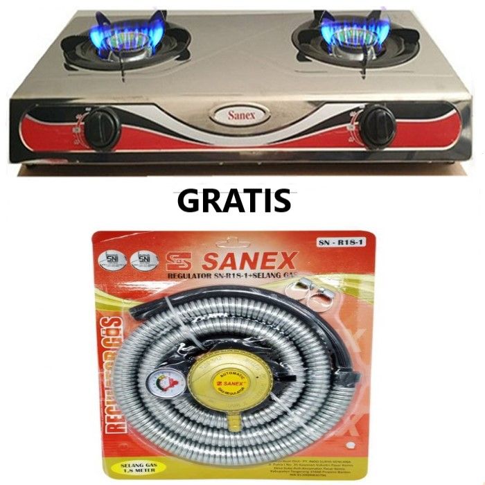 Kompor Gas Sanex 2 TUNGKU Stainless Steel Api Biru Bonus Selang Gas Caisar 1.8 Meter ber SNI