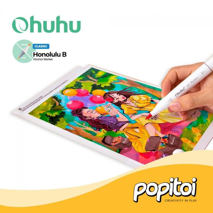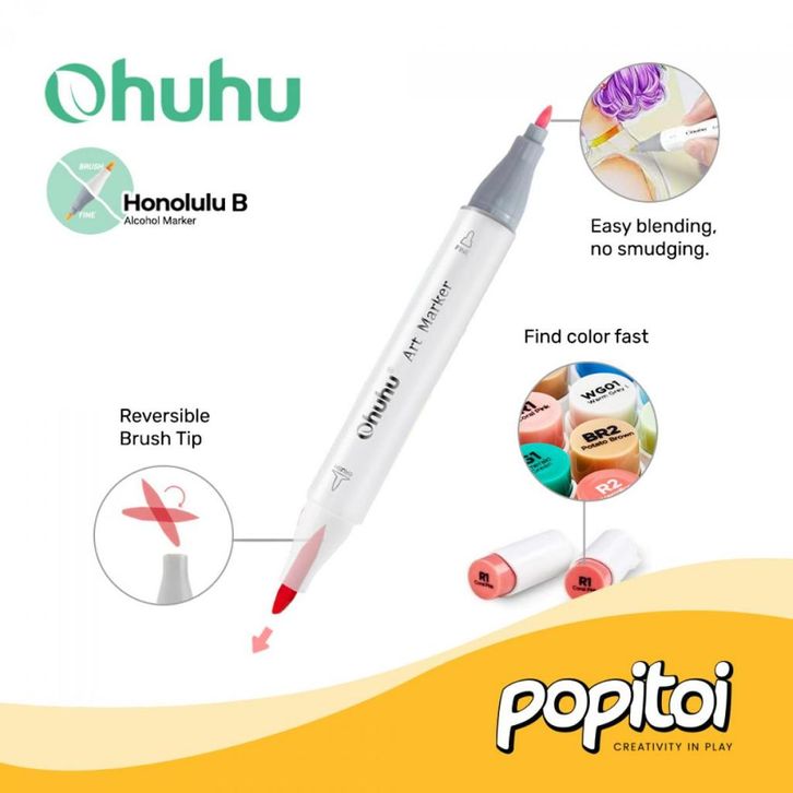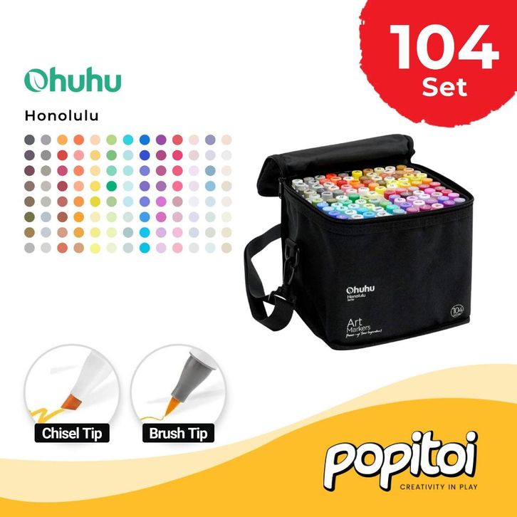 TERLAKU OHUHU Honolulu B 104+1 Colors Dual Tip (Brush & Fine) Alcohol Art Markers Spidol Kuas Warna ibegg
