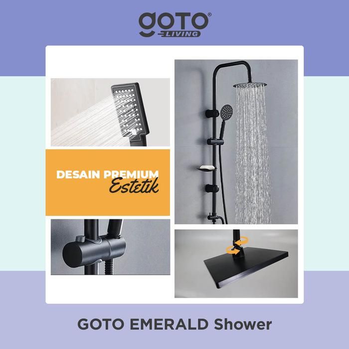 Goto Emerald Rain Shower Tiang 1 Set Sower Kamar Mandi Kotak Bulat - SQUARE BLACK
