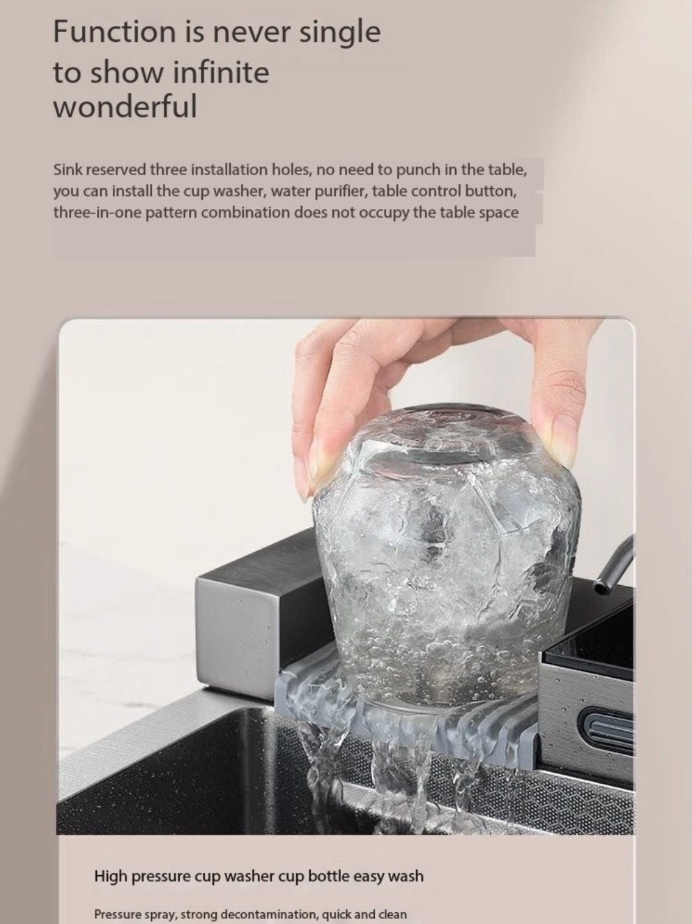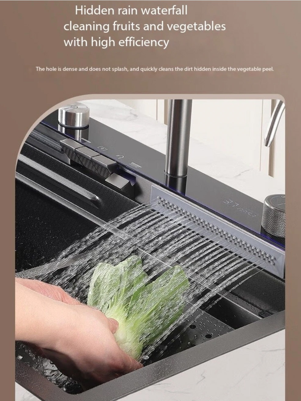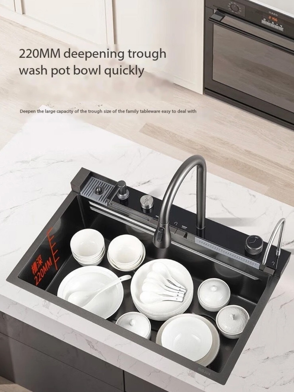WASTAFEL CUCI PIRING SET KITCHEN SINK LUXURY STAINLESS BLACK DIGITAL LED / SINK WATERFALL LED 1 BOWL